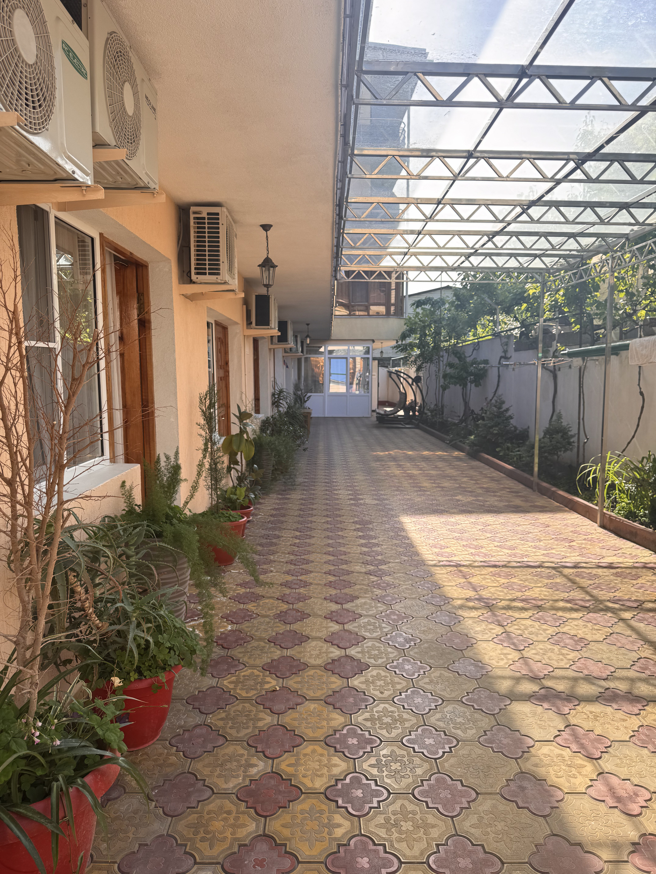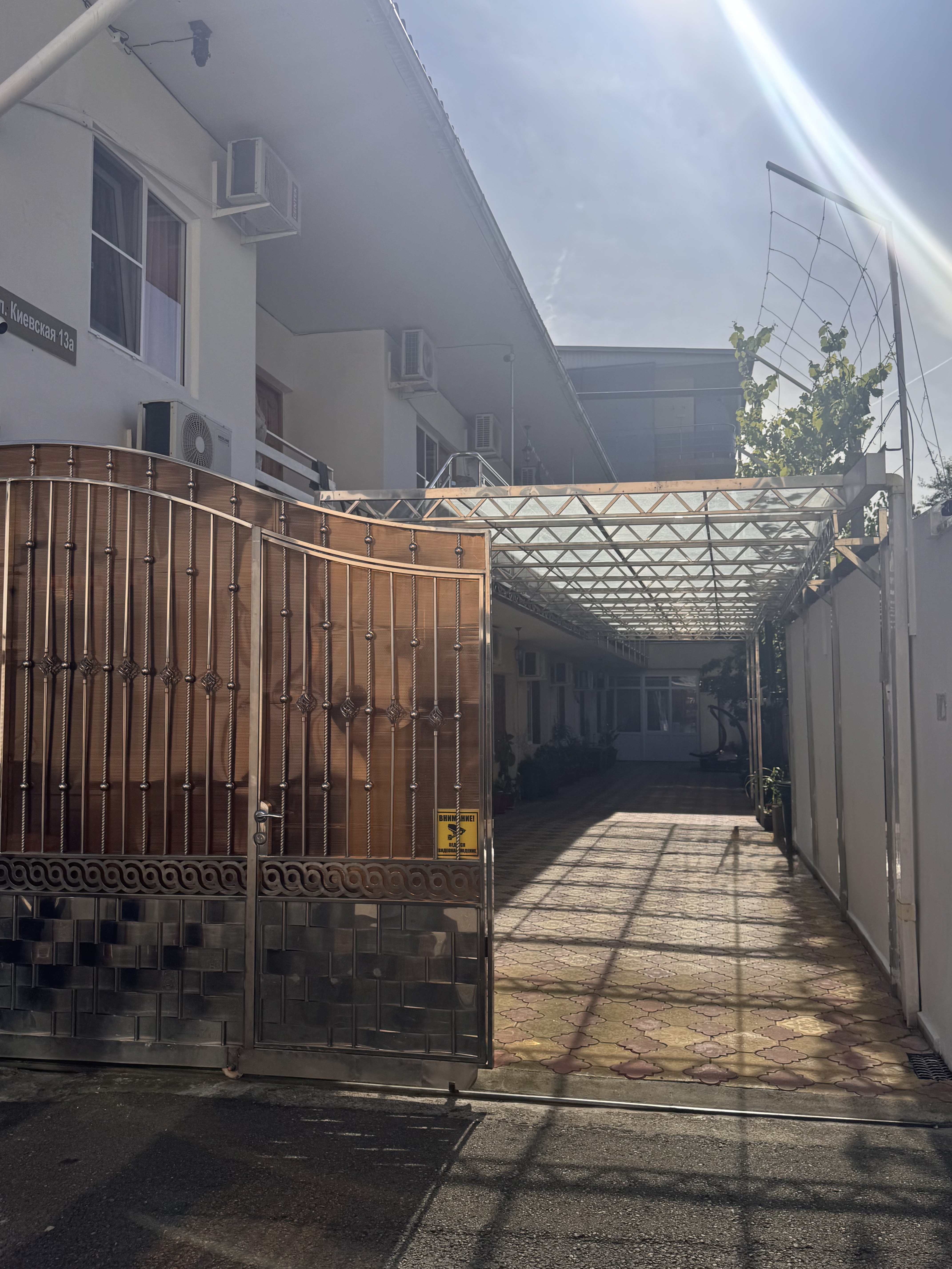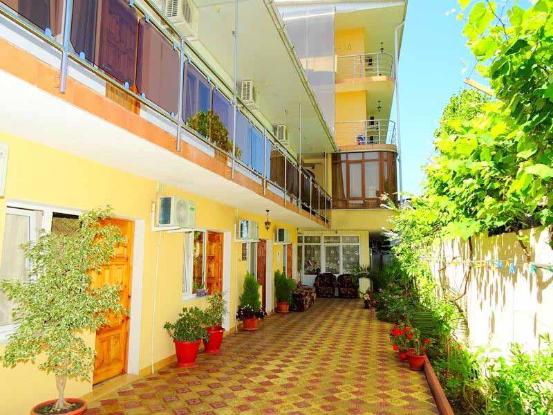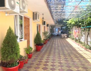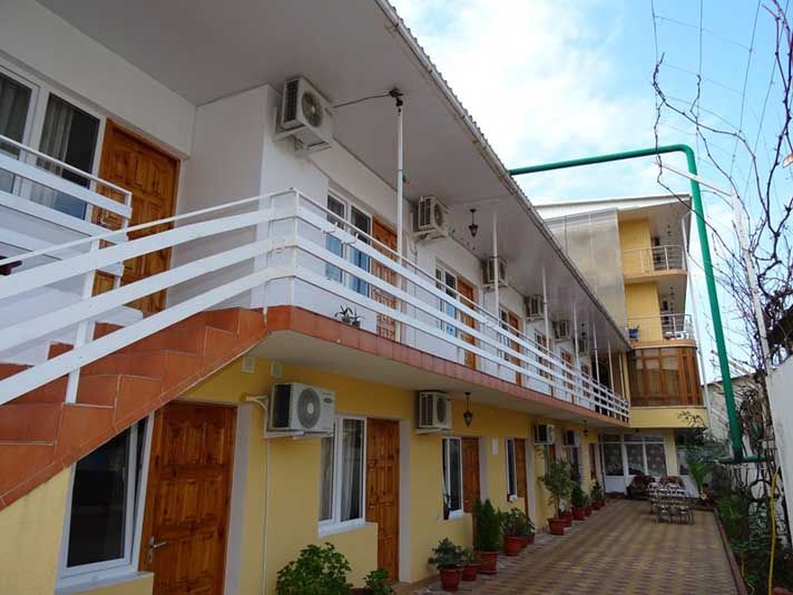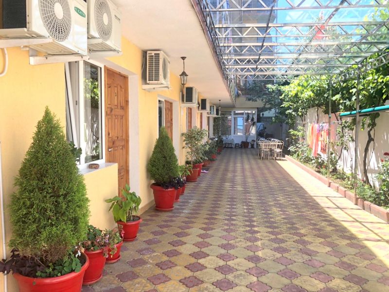 Комплекс, находящийся в тихом и зеленом частном секторе, включает в себя 2 корпуса — один двухэтажный, другой — четырехэтажный, оба без лифта. Гостей ожидают комфортабельные номера Стандарт. В каждом номере — собственный санузел, телевизор, кондиционер, мини-холодильник. На территории есть общая кухня, где гости могут приготовить или разогреть еду и сделать свой любимый горячий напиток. Гостям доступны услуги стирки и беспроводной интернет Wi-Fi.